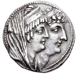 تترادرخما لملكه #الدوله_السلوقيه #كليوبترا_ثيا 164 ق.م وابنها #انتياخوس_الثامن , تسلما مقاليد الحكم بعد موت زوجها #انتياخوس_السابع وكان اخيها . للعلم السلوقين هم فريق من اليونانين او يمكن القول